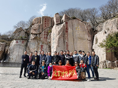 泰山巨幅石刻前合影