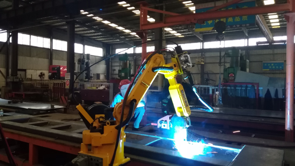 Welding robot for 們要carriage board